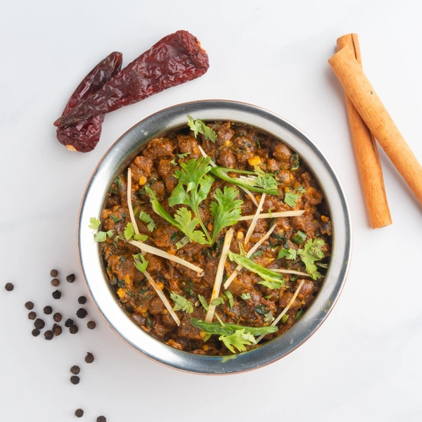 Black chickpeas cooked in a flavorful handi-style curry.